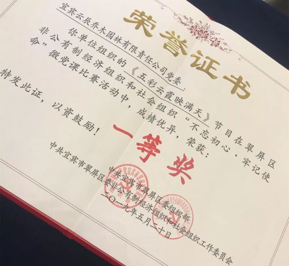 5月20日下午,由中共宜宾市翠屏区委组织部、区委“两新”组织工委主办的“不忘初心·牢记使命”微党课大赛,在城市名人酒店隆重举行。云辰园林与邱场镇强强联手,携情景音乐剧——《五彩云霞映满天》参加比赛。