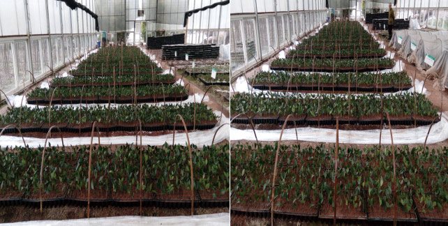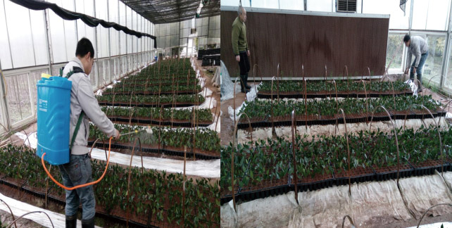 茶花的品种繁多,但带有香味的茶花品种却不多见。云辰乔木园林公司于2014引进一个茶花新品种幼苗,经过两年精心培育,于2016年起就鲜花绽放,让我们感到惊喜的是,绽放的茶花自带玫瑰香味。为了扩大该茶花品种栽培,通过科研区工作人员的辛勤养护,在引种栽培成功的基础上,反复进行了扦插育苗试验,基本上掌握了茶花扦插生根的技术关键。今年在产研院的安排下,科研区工作人员从2月开始到3月初,充分利用现有的该茶花品种资源,在科研区大棚内进行扦插繁育,现已全部扦插完毕,进入日常养护管理中,我们期待着扦插生根成活。