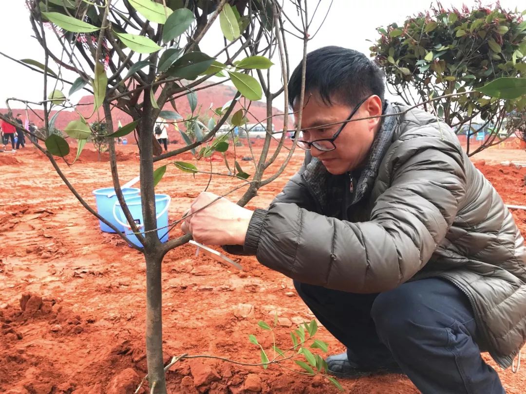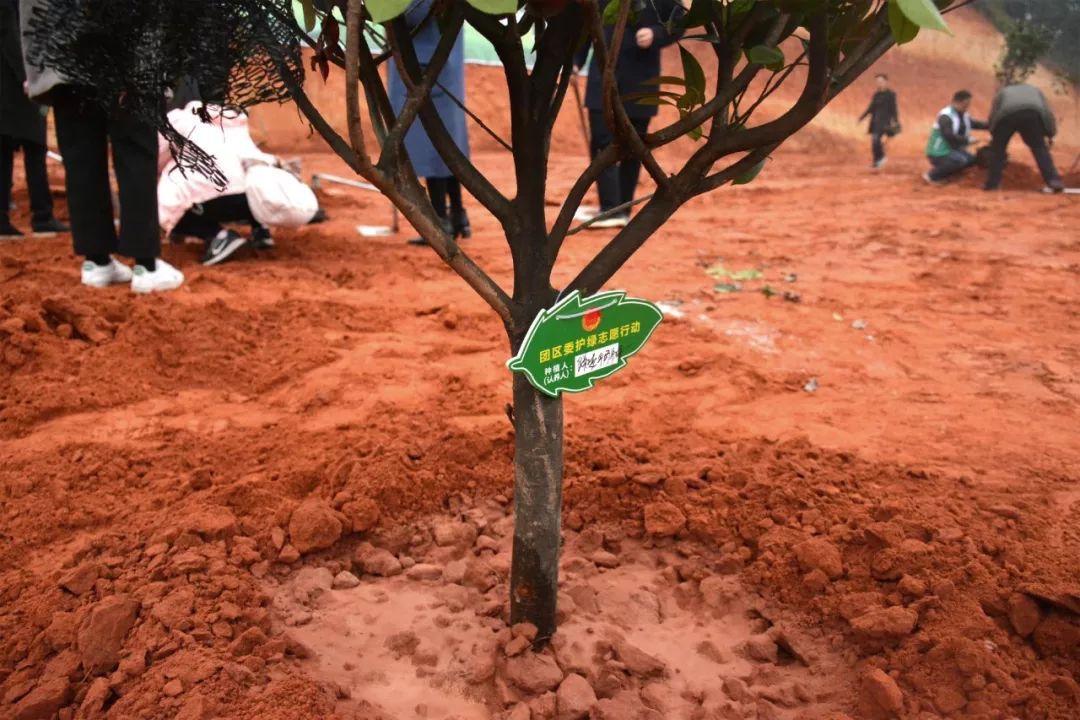 经过一个上午的劳动,60棵红叶石楠站立在9000多平方米的红色土地上,义务植树领养牌上满载着美好的期盼与祝福,更增添了一道盎然的春色。