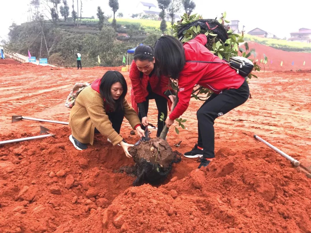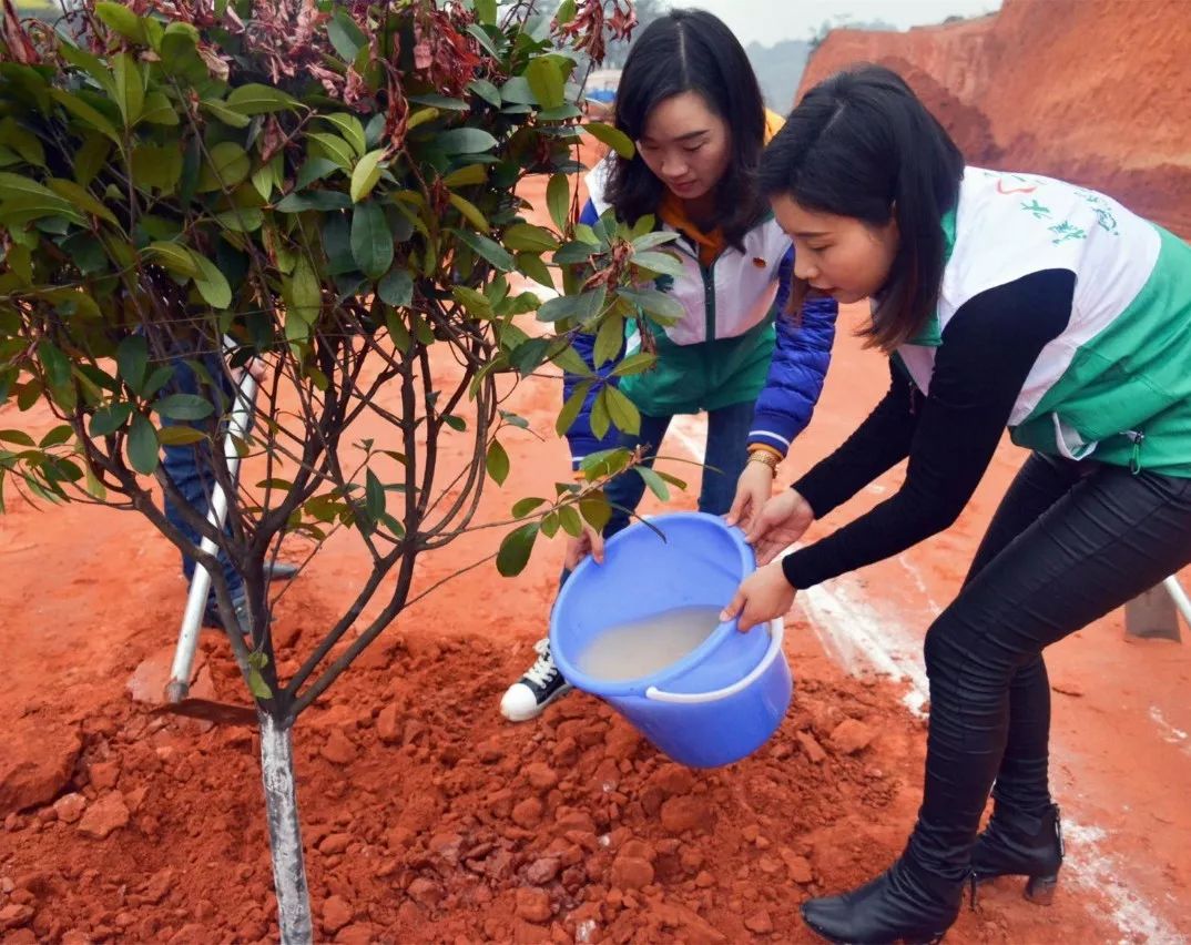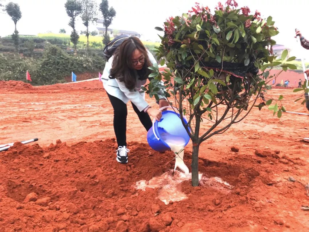 前来参加活动的植树人员迅速组队分工,各司其职,秩序井然地忙活起来。大家充分发挥团队精神,挖坑、放树苗、填土、浇水,干劲十足,其乐融融。
