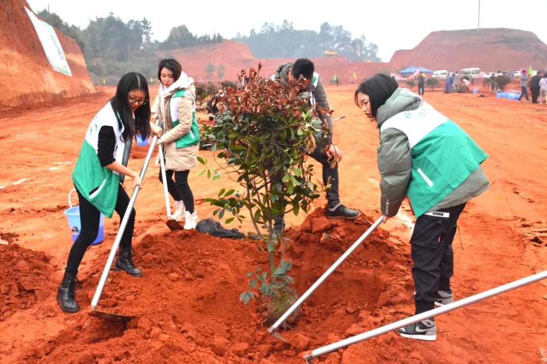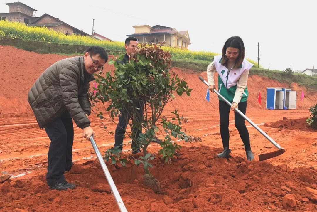 活动现场,近20名企业青年志愿者积极加入植树队伍中,共植绿水青山,共筑天蓝地绿水清的美好环境。