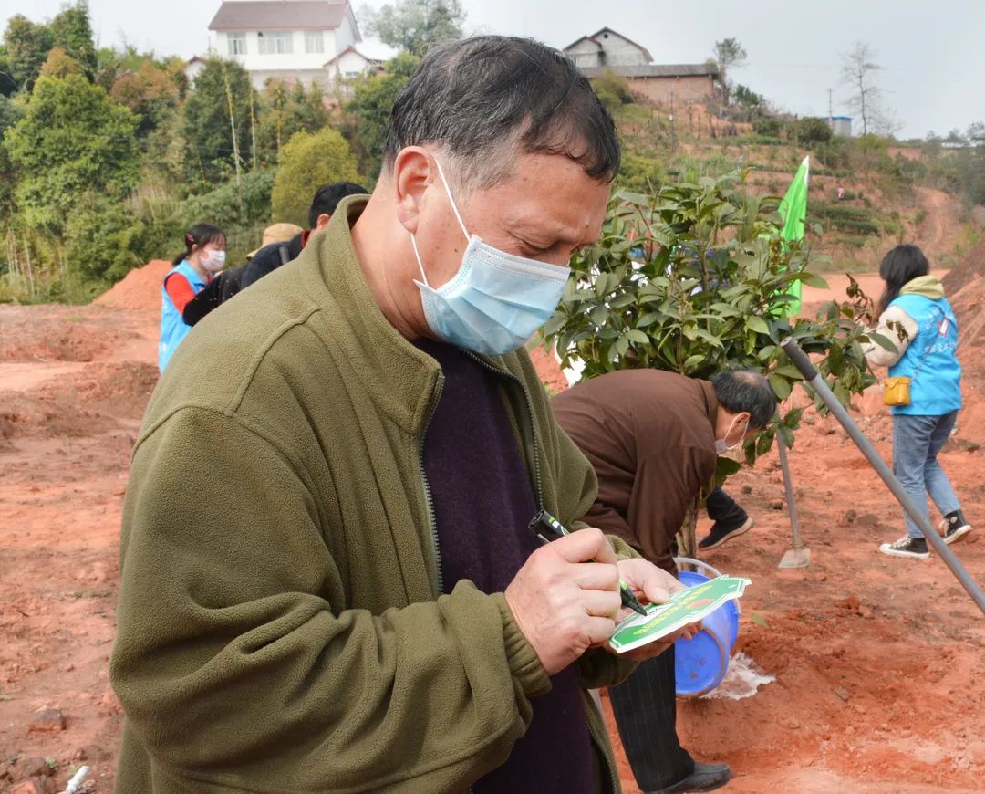 一块块写着栽种人姓名与寄语的树牌